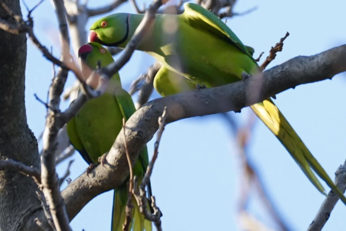 Bakı bulvarında son günlər tez-tez müşahidə olunan yaxalıqlı tutuquşular ziyarətçilərin diqqətini cəlb edir.