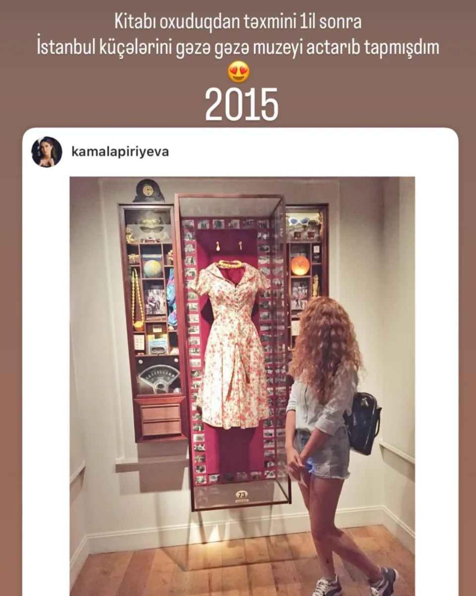 Aktrisa Kəmalə Piriyeva bu günlərdə gündəm olan “Masumiyyet Muzeyi”ndən paylaşım edib.