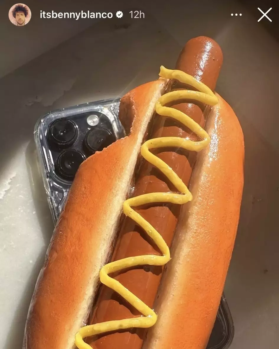 OLAY yazır ki, Benni sosial media hesabında telefonunun arxa hissəsinə sosisli çörək qoyduğu fotonu paylaşıb. Bununla da, model Heyli Biberin son zamanlarda viral olan telefon qabını lağa qoyub.