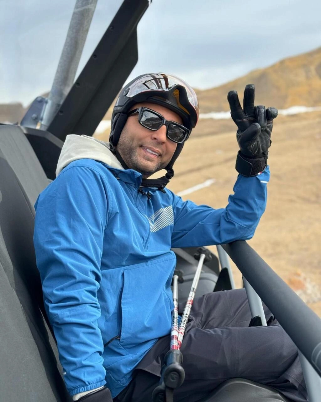 Sənətçi fotolara "Azərbaycanda xizək sürmək" qısa şərhini yazıb.