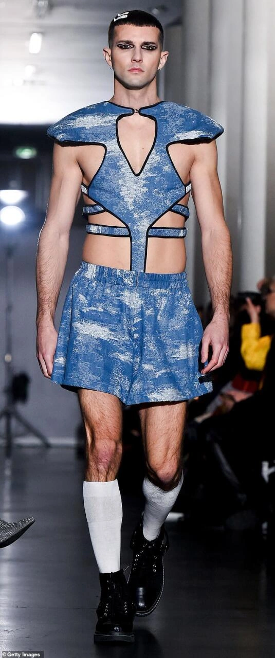 Paris Moda Həftəsində modellər qəribə kostyumlarla çıxış edib.